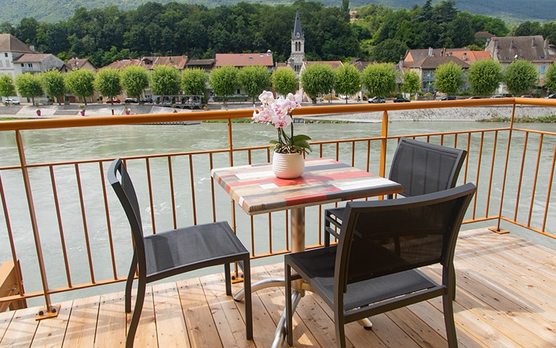 Dans ce bel établissement, Stéphane, Marion et leur équipe vous accueillent tout au long de l’année, dans de belles chambres climatisées au style épuré. Vous y ferez une halte agréable au bord du Rhône, dans cette ville qui a la particularité d’être à cheval sur deux départements. Après votre balade et avant de rejoindre votre chambre, vous avez la possibilité de déguster des plats originaux au restaurant avec sa terrasse les pieds dans le Rhône.